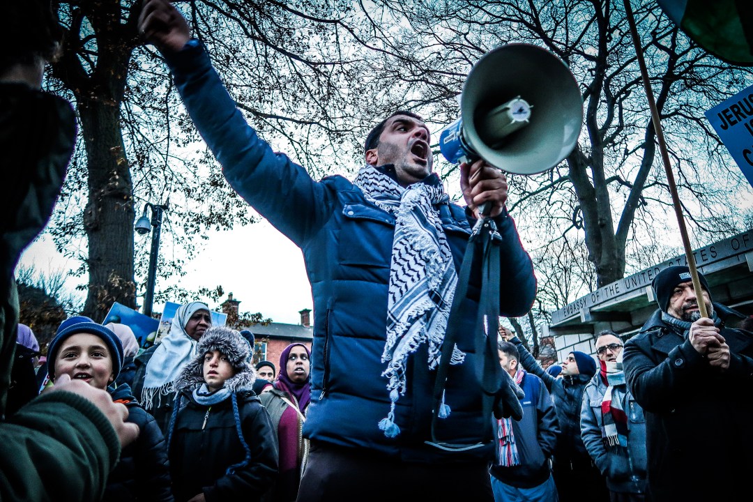 Over 300 Irish Muslims gathered outside the US Embassy in Ballsbridge on Saturday December 9th to demonstrate against U.S. President Trump’s decision to recognise Jerusalem as the capital of Israel. The decision is one that has been condemned by world officials and has brought great despair to the Arab community, including those who reside in Ireland.